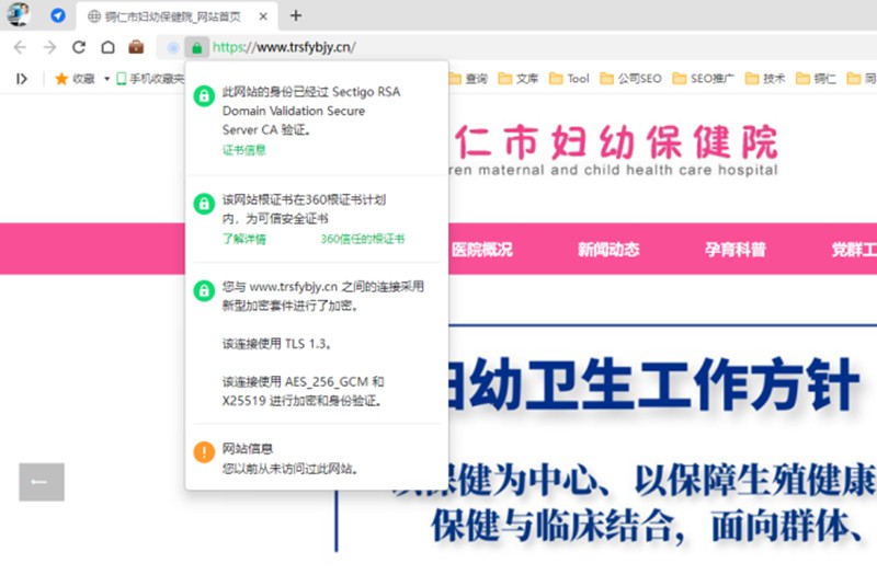 铜仁市妇幼保健院网站SSL部署截图部署SSL证书后,各浏览器显示的效果1、360...
